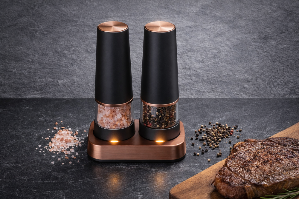 Elevate your kitchen brand with a premium White Label Electric Salt and Pepper Grinder set. Discover how to source USB-rechargeable, gravity-fed models today.